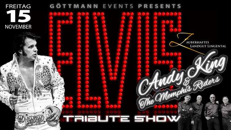 Im zauberhaften Landgut Lingental gastiert er am 15. November mit seinen Musikern „The Memphis Riders“. Zusammen bieten sie ein einzigartiges und unvergessliches Liveprogramm über alle Epochen des "King of Rock`n`Roll".